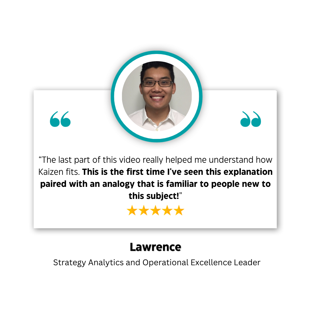I learned how to deliver Kaizen EventsĀ from Japanese teachers while working for a prominent Japanese automotive company. For over a decade, I was trained, coached and mentored by the best teachers I've ever known! Those skills enabled me to quickly advance my career! I continue to use the exact same skills to help teams and companies save millions of dollarsā andĀ I love what I do! If this sounds like a path you'd like to learn about, check out my Masterclass: The Kaizen Advantage!